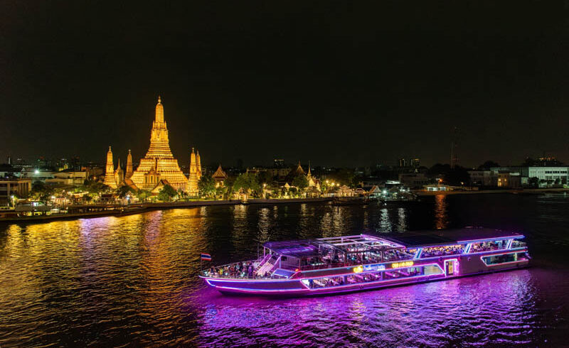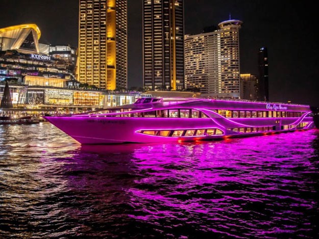 สัมผัสประสบการณ์ดินเนอร์สุดพิเศษบนเรือสำราญสีขาวลำใหญ่ พร้อมดื่มด่ำกับทัศนียภาพอันงดงามของสองฝั่งแม่น้ำเจ้าพระยายามค่ำคืน เริ่มต้นการเดินทางจากท่าเรือไอคอนสยาม (ICONSIAM) พร้อมบริการอาหารและเครื่องดื่มแบบจัดเต็ม